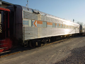 Virtual ExpressThe meeting room car, recently named the Virtual Express, is an 85 foot long stainless steel streamliner coach, built in 1950, which served passengers on a variety of rail lines before being purchased by Amtrak. After being retired by Amtrak, it was turned into a popular restaurant in Rochester New York, before it was again retired to a rail yard. The Old Mill found the car and had it brought to San Marcos via the CSX and Union Pacific Lines. It has been restored to its elegance of yesteryear.
